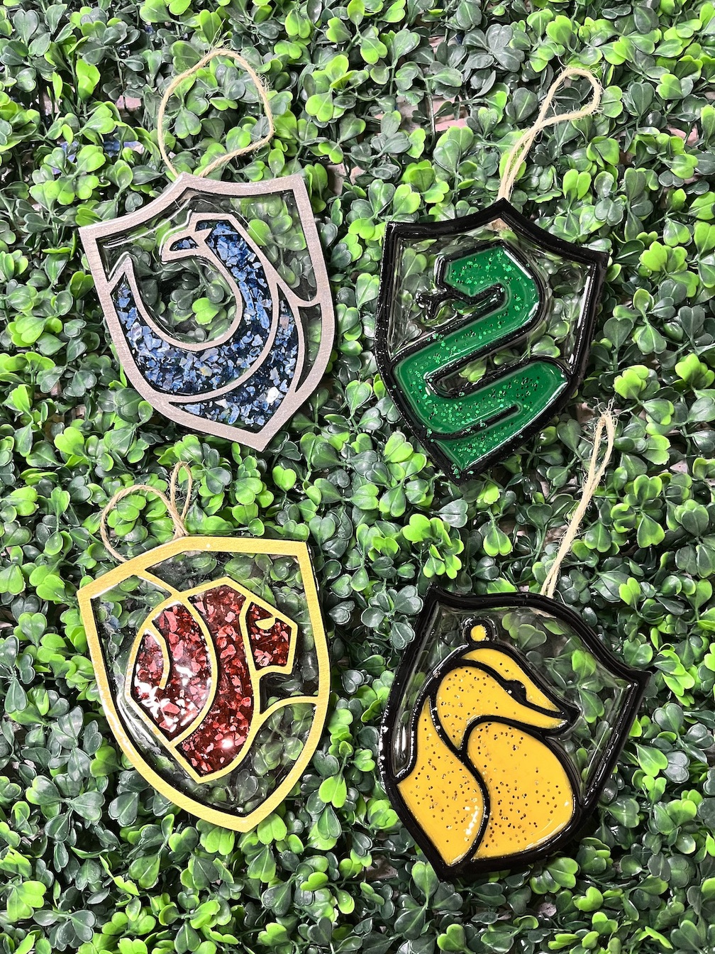 CLASS DETAILS: Welcome to our Ornament Workshop Open House! You must reserve your set by 11/28 at noon but you may come anytime during the open house to get started 12-4pm! We will have complimentary refreshments and holiday music to enjoy! This set of ornaments include one crest for each of the 4 houses. If you would like all of 1 or 2 and 2 (etc...) simply put your requests in the order notes and we'll do our best to accommodate. PLEASE NOTE these will require 24 hours to cure before they can be transported.