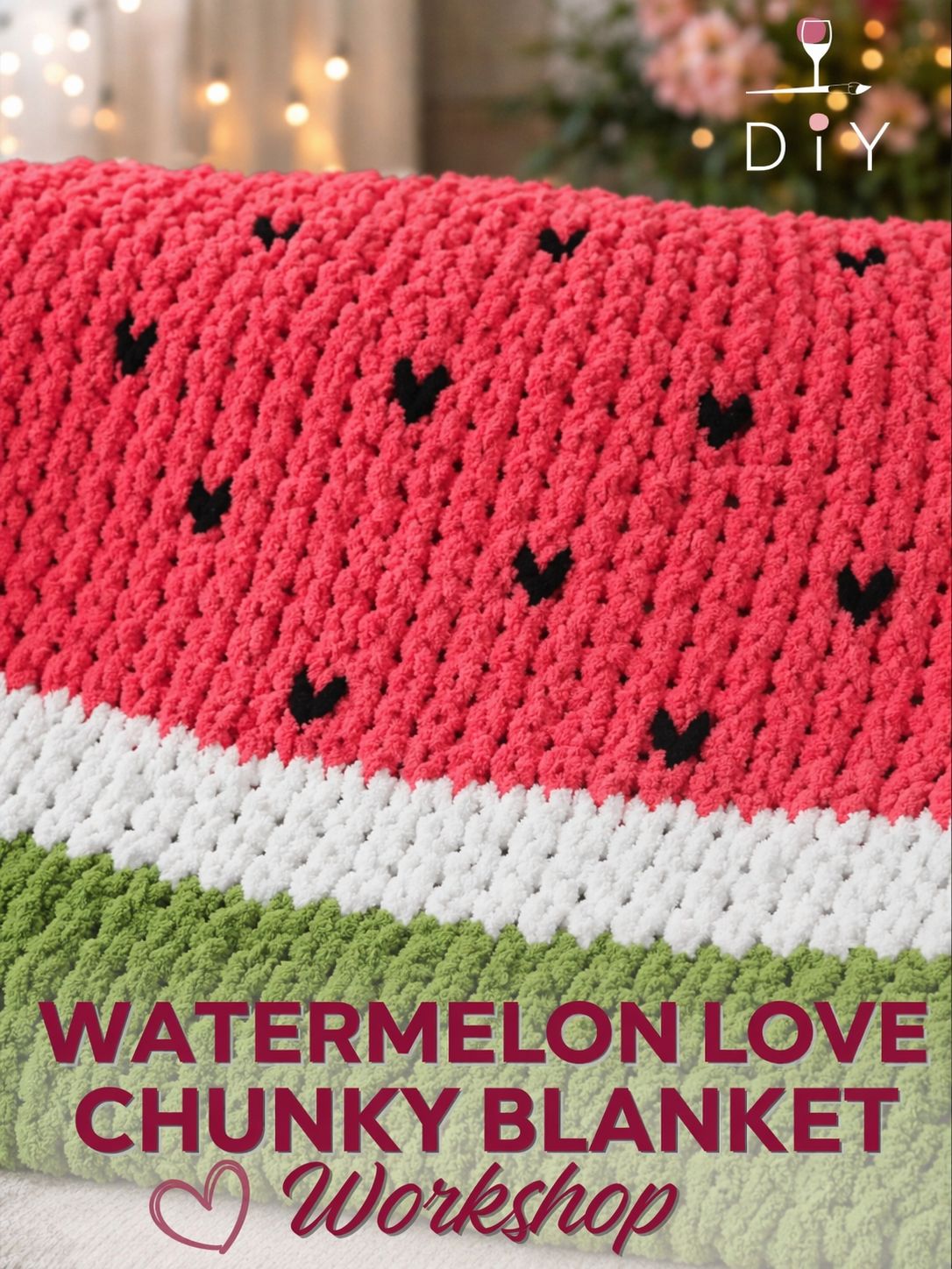 CHOOSE A COLOR OR WATERMELON. We are proud to bring you an amazing new DIY class! Make your own chunky blanket. Chunky Blanket Workshop- See our Facebook or Instagram page for colors! PLEASE INDICATE IN THE ORDER COMMENTS SECTION WHICH COLOR YOU WOULD PREFER: MEDIUM GRAY, TEAL, LIGHT GRAY, COUNTRY BLUE, SPA BLUE, FRENCH LILAC, MUSTARD, OLIVE, NAVY, SPICED PERSIMMON, BUTTERSCOTCH, IVORY, WHITE, BLACK, COFFEE, SAGE, MULBERRY, SOFT PINK, CRANBERRY or a combination of 3. Join us as we hand knit our very own chunky, cozy blanket - no prior experience required! Ticket price includes supplies and instruction to make a chunky, super soft blanket approximately 6'x6'. Perfect for snuggling up during winter on on a chilly night. This is a 3 hour workshop and YES! Your blanket will be finished at the end! Bring your favorite wine, beer and snacks along with your friends. Seats must be reserved ahead of time on our website or by phone. No EXPERIENCE NECESSARY, canvases are lightly pre-sketched. Ages 16 years and above permitted in adult classes. Must be 21 years or older to drink. - We provide everything you need from painting materials to plates, cups, napkins, utensils, ice and bottle openers for your refreshments. - We have a plenty of parking in the Ideal Plaza lot for your convenience. - We are located in the same shopping center as Season's Coal Fired Pizza and across the street from White Castle. - THERE ARE NO REFUNDS. Credits may be given up to 24 hours before class. CREDITS WILL BE GOOD FOR 30 DAYS.