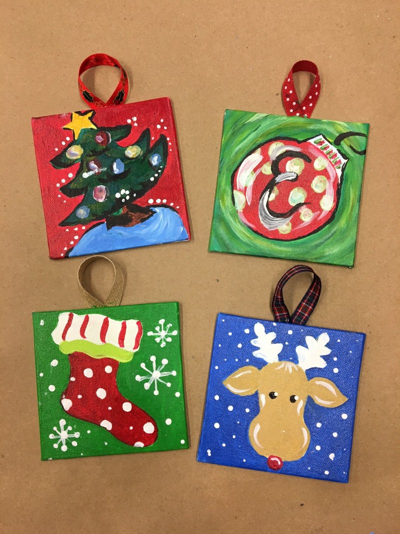 Art Buzz Kids Mini Canvas Christmas Ornaments Class