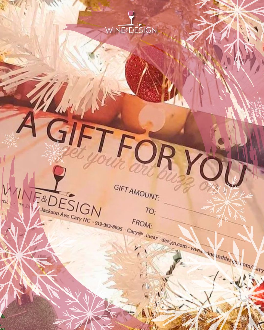 Good for a date night at Wine & Design! Covers 2 seats in a standard canvas painting class. **ONLY VALID AT THE RALEIGH LOCATION**